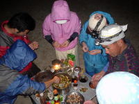 | ヤガラッチがキャスティングで釣ったミーバイでお作りを自ら作っていただきました。センスがいい!勉強になります。この時、ミーバイはまだ生きてたんだよ!と、いうことは自分が食べられるのを見てるのかも!ぎゃ〜。 | 渡嘉敷年越し祭りがあり、 慶良間太鼓からエイサーと とても楽しかったらしい。 らしい!というのは睡魔に負けて 瞑想してしまった(涙) だから写真なし、トホホ・・・ |
