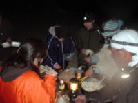 夕食。 夜は寒いから、 シチューを作りあったまる。 |