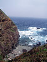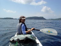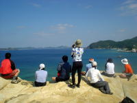 この直後クジラが後方に出現!尾びれを海面にたたいていました。かなり近く、海面をたたく豪快な音が聞こえていました。私も久しぶりにクジラを見て、写真を撮るのをすっかり忘れ、クジラに見入ってました。5分くらいい続け、動力船が近づくとどこかへ行ってしまった。さいじょう&やまばやし艇かなりの至近距離。 | 安室島に到着! クジラの興奮も冷めず、初日から、 あんないいもん見ていいのか! あのクジラでツアー代元取ったって 感じでした。 |