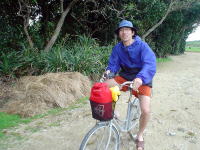 海峡をを横断中、北東の風から、南東の風に変わりどうも天候が怪しい・・・。177で予報を聞くと明日の波に高さ4m!「どっひゃー!」 「まずいぞ」明日に備え、渡嘉志久ビーチのすぐ南にあるビーチにキャンプすることにしました。 |