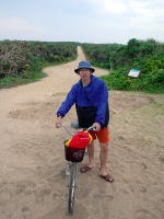 | 久高島の最北端に到着! 遠くに続く白い道がなんとも 言えずいい味を出してます。 |
