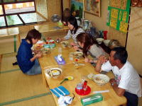 | 鯨散歩から帰ってきて昼食。晴れわたりポカポカ陽気が気持ち良かった〜。 こうへい君ビーチで倒れるように眠り続ける♪ |