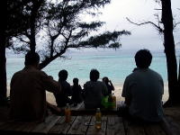 海の綺麗さのあまり潜りましたが、ラッシュガードだとまだ寒いです。ただでさえ脂肪がありませんから(♪) あがってすぐにハッピーアワーとなりました。 |