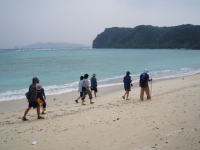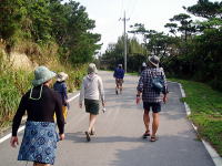 晴天に恵まれ、渡嘉志久ビーチを目指す。 |