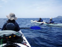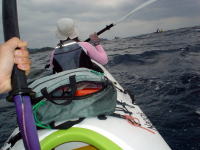 | 北東の風が強く、漕がなくてもパドルで風を受けてグイグイ進んでいく。 渡嘉志久から阿波連へ |
