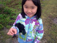 雨が降ったせいか、いあたるところに イモリが発生!!! そのイモリをつかまえご満悦な様子の みのりちゃん!3年連続漕店ツアーに 来ていただきいます♪ |