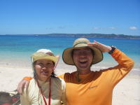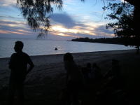 夕食後、伊是名ビーチで夕涼み。 風が気持ちよくて、浜でうたた寝。 この後、突然ビーチでエイサーが始まり、勇猛な踊りと熱気にいたく感動しました。 |