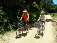 | 久高島に上陸! | 昼食を済ませた後に、島一周サイクリングへ。これがまた気持ちが良い。裸足で自転車に乗っていました♪ | 最北端のカベール。 津堅島もくっきり見えました。 |