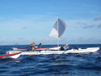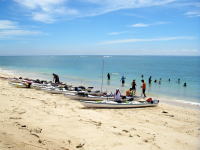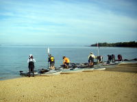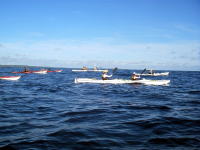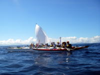 | この後、伊平屋港まで漕いで、フェリーで運天港に入り 高速で那覇に戻って、狭い所で秘伝のカヤック10艇乱れ洗いをやりました。 狭いぶん段取り良く行う為に、みなさんのご協力に感謝しております。 |
