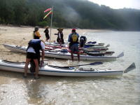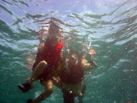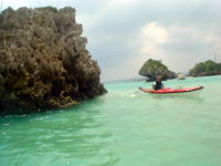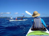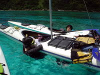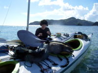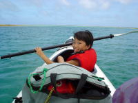 一時間程シュノーケリングを楽しみました。 途中カヤックに捕まり休憩中。 |