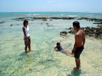 | シュノーケリングをメインにということで、リーフまで漕いで行き、干潮の時に行けるポイントへ行ってきました。 ちょいと深いとこで、魚の大群が!!! |
