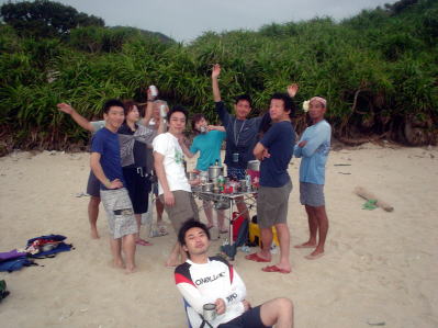 | 阿嘉島から渡嘉敷に戻る時は東よりの風で向かい風となりました。 | で〜びるでの打ち上げ! | 次回は得本さんも♪ |