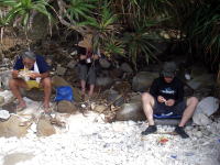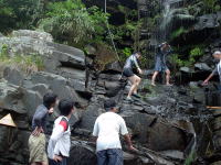 | 海で泳いだ後に滝へ水浴びしに! 最近雨が少ないから、ちょろちょろ程度ですが、真水を浴びるだけで気分が良い♪ |