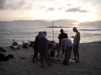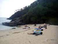 日が傾き、浜の陰で皆お昼寝。 泳いだ後の昼寝は何でこんなに気持ちがいいのであろうか!この光景は「ケイゾク」に あったような・・・ |