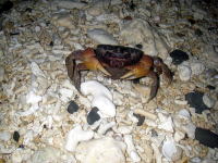 大潮で満月でもあり、カニが産卵しに海に来ていました。手のひらくらいのこのカニが浜のいらるとこにいて、中にはテントに入っていたらしい(♪) | 翌朝、体中に虫にさされマジで 痒かった〜!いくら刺してもいいから、 痒くしないでと虫に 一言いたい! |