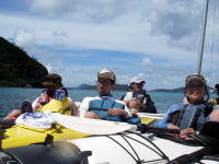 | ビーチに着くと、シューマッハがコーナーを攻めるがごとくソフトクーラーに右手が進入!間一発入れずにビールを掴み取り、ありがたや〜♪ありがたや〜♪とやさしくファスナーを閉め、これまた、速攻でビールを体内に補充。そこで私思った、「ここから昼飯に移動しないな〜」と。そこで車でAコープに戻り昼飯を買出し、弁当がすでに完売で、ひらめいたのがサンドイッチ。海で食べるとなんでも美味しい! | 禁断症状が出るということで、海に突入。漕げなかった分、せめて沖縄の海泳ぎたい!はかない願いが叶いました。ポンポコリーン♪ | |