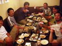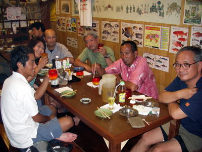おーーーー! 事務所に戻ると、石橋さんと合流し、昼間からあれだけ飲んだのに、またもや宴会スタート!飲めない私は羨ましくてたまりません。 18:30にレンタカーを返しに一度泊港へ。返し終わりタクシー代を浮かす為に、ちょっと歩き始めると、夕涼みで気持ちが良い、気温も下がって風もサラサラ流れていました。漕店まで歩けそうな気がしたんですが、久茂地交差点を過ぎたあたりでタクシーに乗る。 夏も終わって少しずつ涼しくなっていくのも、嬉しいようで寂しいようで複雑な気分です・・・ 21:00ごろ早めにお開きになりました。 早いと言ってもスタートは12:00ですからね♪ |