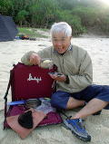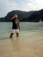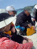 2日目は停滞。 クンシの浜に3人の釣り師が現れました。 海に出れないのならここから仕留めてやろう!とばかりに 各々が好きな場所で腕をふるい・・・ 帰ってきた釣り師のことばは「渡嘉敷に魚がいないことが判明しましたっ」 クジラも休みなら、魚も有給とっていたようです、、。 |