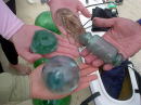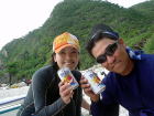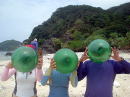 今回の「にぎやかだったで賞」な二人に またも手に入れてしまったドラゴンボールを持ってもらいました♪ 先週に引き続き、ガイド、カヤックをおりて走って取りにいきました(笑) 一部の人は「吐きに行ったぞ!」とダマサレテいました。。。 |