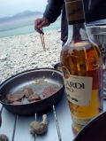ラストナイトはゆっくりと更けていきました。 まさか、明日の朝荒れた海の中を漕いでかえることになるとは・・・ |
