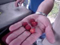 フェリーが出るまでの間、島をのんびりドライブしていると「まき、車止めて!」 なんだろうとドキドキしていると、「ほら」と手から出てきたのは。 イチュビ(野いちご)でした。 |