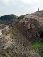 海から見えないので、高い所へ。 みんなで山登り。 あべちゃん、ぽつんと離れていますが仲間はずれじゃありません。 |