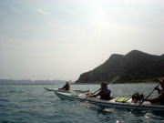 ようやく青い空が見えてきた3日目。 今回は横断しないという判断をしたので クジラを探しつつ「せっかくだから漕ぎましょう!」 浜辺でまったりは昨日したから、いっぱい漕ぎましょうね〜 |