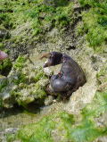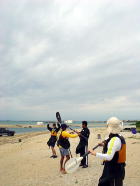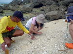 1日目、2日目とキャンプをした浜にちっちゃい住民がいました。 「えさをあげてはいけんっ!」 とみんな心を鬼にして石を投げていたのですが・・・ 夜は大城さんのテントの前室を寝床にしていました。 |
