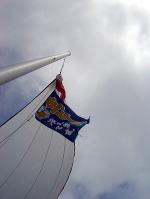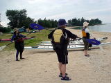 ならば、こっちは帆走だっ! と大城艇。 今回はタープも使って2つも帆を張りました。 (写真、どなたか送ってください!) |