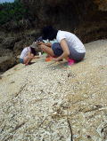 みんなで覗いた海の中。 タイドプールを見つけては立ち止まり、見つけては立ち止まり・・・ 海の色仕掛けにハマってしまい。 前に進んでないです(笑) |