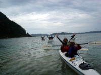 帰りは向かい風の中、がんばって漕ぎました。 特にシングル艇にのっていた三浦さん。 他の四人が「サンドイッチにはチーズとジャムだよ!」「ごはんにはベーコンがあればいいよっ」論争を繰り広げている間、 黙々とがんばって前に進んでいました。 お疲れ様でした!! また三人でひょこっと遊びに来てくださいね♪ 次回はおいしいお酒のあてを獲りに行きましょうか! |