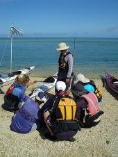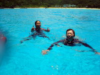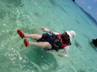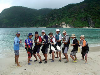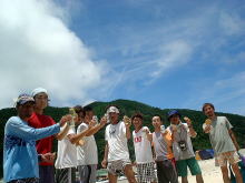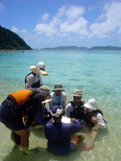 「あぢーっ」 「オーバーヒートだーっ」 パッキングをしながら、途中でみんな海に向かってダッシュ!! なかなかあがってきません(笑) 今年初の海の中でのブリーフィング。 暑いので海の中が定位置になっちゃいます。 |