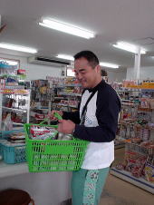 まずはまずはと買出しです。 カゴの中は全部ビール♪(これで今日一日分です) 足りるかなぁ。。。 |