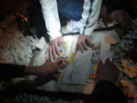 今日だけ開店、タロット占い「 arai の部屋」。 後藤さんの悩みの行方、漕店の未来、まきの恋愛運・・・ 結果は。。。 「あたってる!!」 風が強くてみんなで手で押さえています。 |