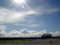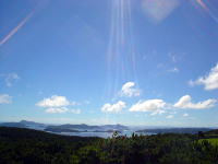 「今日だったら一日で漕いで行けるよ」 帰りに寄った山の上からは、遠く、久米島まではっきりと見えました。 |