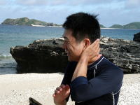 梅雨が明けましたっ♪ 明けた途端にまったく雨が降らなくなりました・・・ 空を見上げるとモコモコとした入道雲、 海辺を見ると海水浴を楽しむ親子、カップル、大学生や観光客、 すぐ横にはオリオンビールを掲げる小室さん(笑) 夏です! |