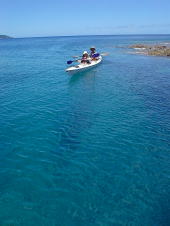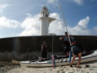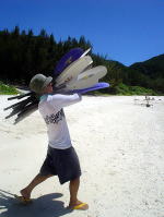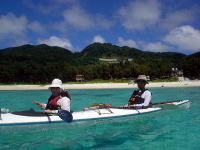 最後の日も、きれいに晴れてくれました。 ちょっと嘉比島まで足を伸ばして。 帰りは2.5mのうねりの中、 「わぉ!」 なんて言いながら、みんな楽しそうに漕いでいました。 いいうねりでした〜 |