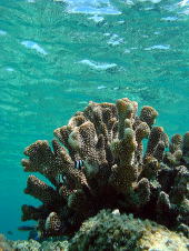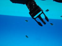 魚たちの赤ちゃんがいっぱい! サンゴの中に隠れているからなかなか顔が写りません(泣) |