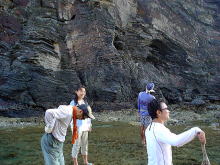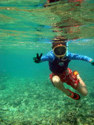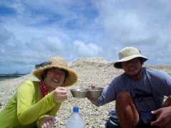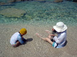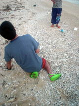 遊び上手なお二人。 次々にいろんなものを見つけてどこかに消えてしまいます・・・ なんでも触ってしまうひがみさん。 ナマコをすごーく嫌がるすなおさん。遠いとこにいますねー 「日帰りじゃあ、遊び足りない!まだ2時間は海の中にいられたね!!」 ですね(笑) |