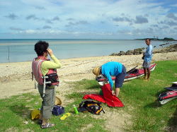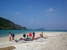 | 無人島に行くまではうねりと波にもみくちゃにされながらで大変でしたが、 (ひやっとした瞬間が何回か・・・) 帰りはスイスイっと帰ってくることができました。 間違いなく上手になってますよ! もっともっと遊ぶにはキャンプしかないですよ〜♪ どうしますか?? |