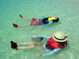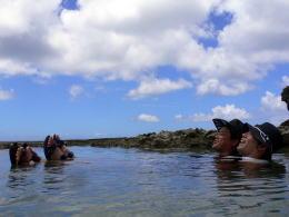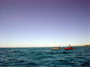 やっぱり海の中は気持ちよかったー♪♪ カヤックで出発する準備が出来ると、どうしても体が海のほうへ向いてしまうんです。 3日間とも気がつくとみんな、海の中にいました。 |