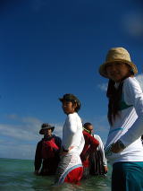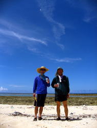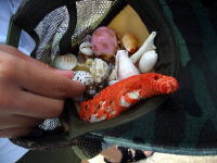 お昼ごはんを食べて、シュノーケリングをして。 干潮の時間に飛び出してきたリーフで散歩。 カニ、マンジュウヒトデ、シャコ・・・などなど。 たくさんの生き物を見つけました。 |
