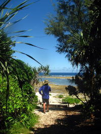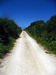 久高島へ着いて、島を一周、サイクリングに行きました。 どこでも入っていいわけじゃないんだけど、海に続く道へは好奇心をおさえきれず・・・ (この島は男人禁制、女人禁制の場所があったりします) 「海ではむやみに獲物をとっちゃいけません!」という看板が立っていました。 |
