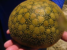 焦げ漕げは午前中だけにして、お昼ごはんを食べ終わってから 湧水があるという崖、干上がったリーフを散歩したり、シュノーケリングしたり。 おっきなマンジュウヒトデを見つけました。 |