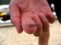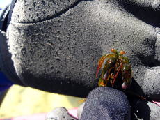 またまた出発前にリーフの中で捕まえました。 体の大きなシャコです! 「バチンっ!!」と弾かれないように気をつけて・・・きれいなカーキ色をしていました。 |