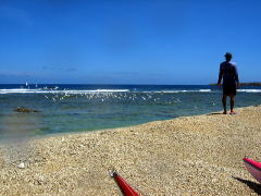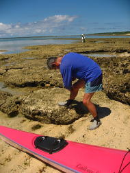 今日も干上がったリーフにカヤックを置き、海で体を冷やしていました。 大潮なので、リーフで潮干狩りをしている地元の人がたくさん! みんな、あっちゃー(歩いて)して獲物を捕っていたようです。 明日は今日よりきれいな海でシュノーケリングできますよ〜 |