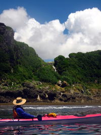祈りが通じたのか今日も見事な青空。 昨日は西海岸、今日は東海岸へカヤックで漕ぎ出しました。 今日のメインは、ゆったりまったり。 お昼寝するのにちょうどいい洞窟があるんです。いい風が吹くんです。 |