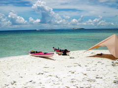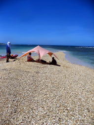 サンゴでできた島にタープを張り、思い思いに遊びます。 タープの下でゆるゆるまったりするのもアリ。 貝殻を拾うのもアリ。 シュノーケリングで海を漂うのもアリ。 |