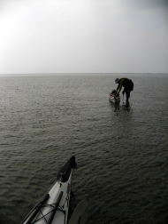 帰りは潮が引いていて、漕ぎ漕ぎツアーになってしまいました。 みなさん、お疲れさまでした! |