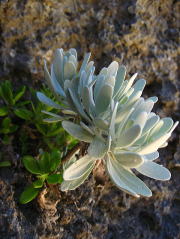 他の植物の葉っぱはあったかいのに、この白い葉っぱだけは冷たい! 発見です! 熱いもの触ってしまったら、この葉っぱを触ればOKなはず・・・? |